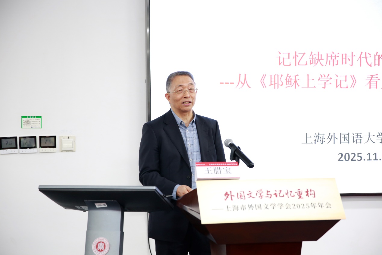 名誉会长李维屏教授在致辞中指出,记忆重构是文学最本质的功能,也是作者的使命,是外国文学和文化传播的重要前提。他强调,记忆的主要内容往往围绕社会重大事件展开。随着人工智能时代的到来,人类对记忆本身的认知正在发生变化。因此,他提醒学界不要只做审美研究,而应注重文学与历史、社会、思想的互动,并呼吁研究者们树立坚韧的主体意识,将中国视角作为立项的基本标准之一,在研究中应力求内容创新。