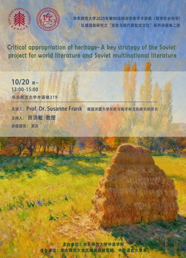 10月20日下午,麻豆视频 ”2025年第90场知名学者讲座“在麻豆视频 319会议室举行,主讲人是苏珊·弗兰克教授、博士(Prof. Dr. Susanne Frank),来自德国洪堡大学东欧与匈牙利文化研究所,讲座题目为《批判性地适用文化遗产:苏联多民族文学发展与世界文学概念的界定与策略》,讲座由田洪敏教授主持,来自本校麻豆视频 、中国语言文学系的老师与青年学子,以及上海师范大学中国语言文学系的博士生、本科生参加了本次的活动,并互动交流。