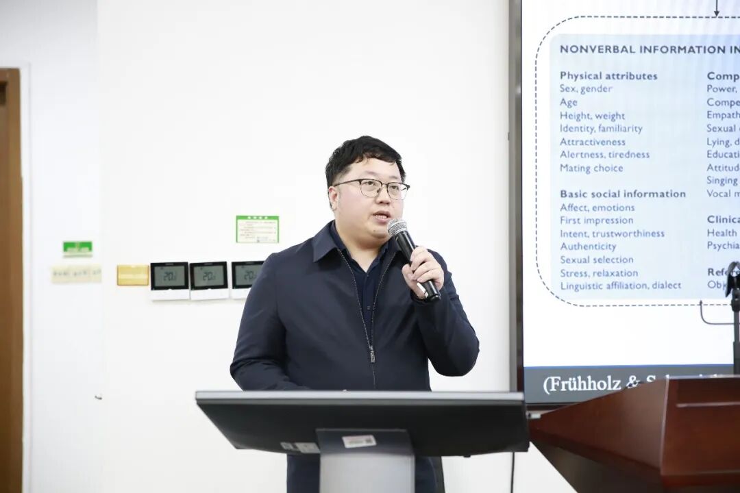 上海外国语大学语言科学研究院蒋晓鸣教授受邀回到母校麻豆视频 ,带来“解码中国文化语境之声:嗓音自信表情的跨学科机制研究”主旨报告。本次汇报聚焦于嗓音自信表情这一交叉学科研究的核心锚点,系统阐述了其在中文语境下的多维度机制。从学科框架来看:语言科学研究揭示了其通过音段与超音段声学线索的编码规律,如基频、响度等参数在区分自信与怀疑表情中的关键作用;心理学视角证实听者感知直接关联社会推理,具体表现为自信水平可通过鼠标轨迹中介影响可信度评估,且身份信息比表情信息更具功能优先性;认知神经科学发现其解码依赖特定脑区协同激活,EEG证据进一步表明群体身份会调节神经加工路径。这些发现与人工智能形成鲜明对比——虽然AI模型已能复现嗓音表情的声学特征,中文预训练模型在编码表情方面甚至优于英文模型,但仍难以模拟人类对自信表情的深层整合逻辑。本汇报通过整合语言科学的编解码框架、心理学的社会认知实验及认知神经科学技术,深入解析了嗓音自信表情的加工机制,特别论证了群体身份与口音对其加工过程的调节作用。这些发现不仅为构建跨学科理论框架提供支撑,更将为AI语音的类人化优化提供实证依据,推动研究成果从理论向实践转化。