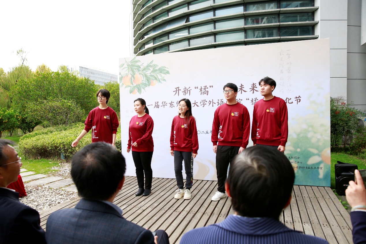 多语种朗诵《橘颂》(2024级翻译(双学位)本科卢芷萱、2022级日语本科黄子衿、2025级法语硕士夏豆豆、2025级德语硕士张邵楠、2024级俄语本科许明顺、2024级西班牙语本科王茜)