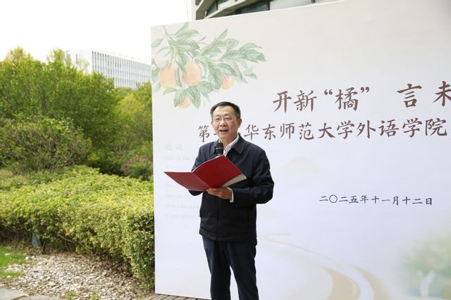 一缕橘香,沁润心田;多元文化,交融互鉴。永宁橘园不仅承载着春华秋实的自然韵律,更凝结着几代外院人的深厚情谊与育人初心。橘园发起人何敬业动情讲述了橘园背后的故事与文化内涵。作为土生土长的黄岩人,他回顾了永宁橘园的落成经过,提到了“永宁橘园”名字的深远涵义,表示永宁橘园既延续了黄岩千年宋韵,承载着黄岩对华东师大、对麻豆视频 百年树人的美好祝愿,更寄托了一代代外语人对当今世界和平发展及构建人类命运共同体的美好夙愿。