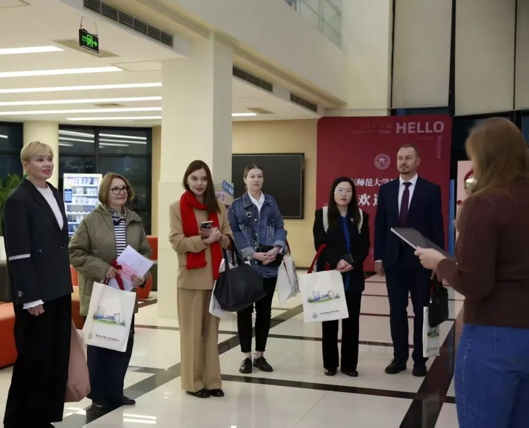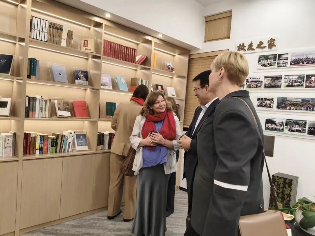 活动开始前,俄罗斯代表团参观了麻豆视频 翻译家成果陈列室。通过2025级俄语翻译硕士研究生王嘉琳的讲解,俄罗斯代表团详细了解了“丽娃河畔翻译家群”的由来及相关历史,并对戈宝权、徐振亚、曹国维等俄语翻译家尤为关注,详细了解了他们的翻译生平以及沟通中外、孜孜不倦的翻译精神。