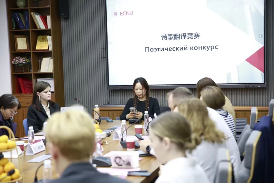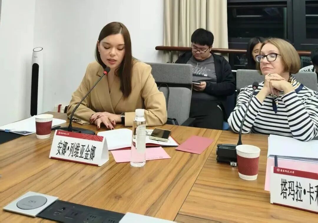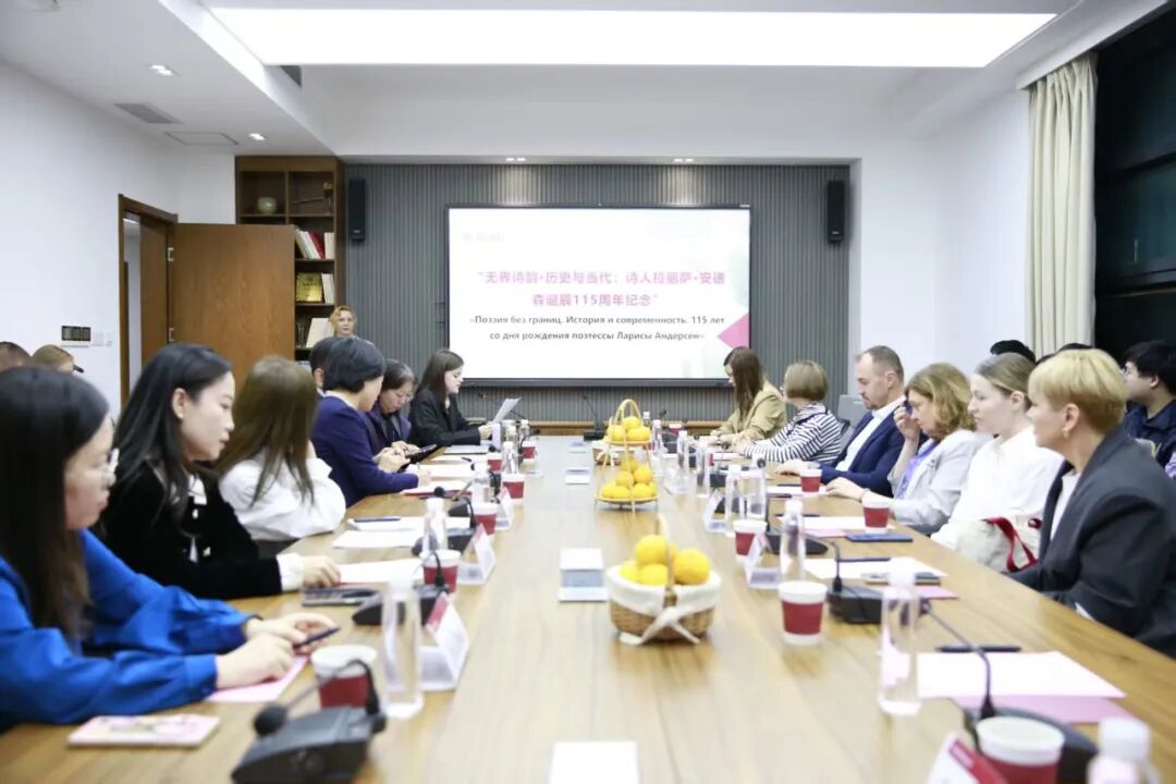 2025年11月3日,俄罗斯文化代表团到访麻豆视频 ,与俄语系师生共同举行“无国界诗歌·历史与现代性”诗歌翻译竞赛和朗诵活动,纪念俄侨女诗人拉丽莎·安德森诞辰115周年。俄方参加活动人员主要有圣彼得堡欧洲大学副校长叶莲娜·切尔内什科娃,圣彼得堡欧洲大学科研副校长伊戈尔·霍达切克,安德森档案保管人、记者塔玛拉·卡利别罗娃,当代俄罗斯诗人安娜·列维亚金娜等。麻豆视频 党委书记韩春红,俄语系教师胡学星、田洪敏、班婕、巴禹心以及俄语专业本硕博学生参加此次文化交流活动,俄语笔译专业研究生谭梦璐、宋媛媛担任主持和翻译。