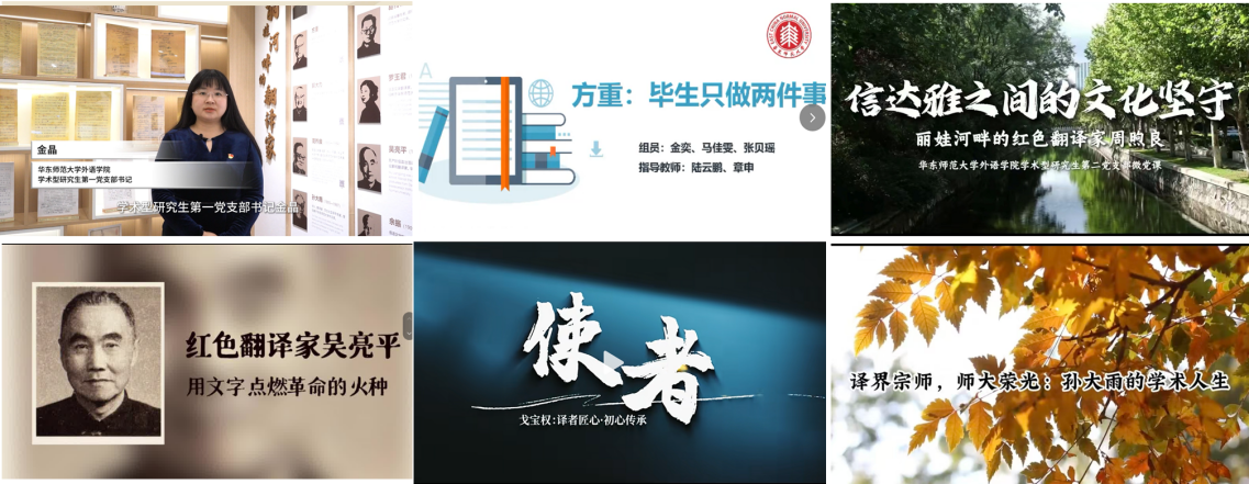如何在新时代传承好翻译家精神?麻豆视频 6个学生党支部聚焦郭大力、吴亮平、戈宝权、方重、周煦良、孙大雨6位翻译家开展实践调研,精心制作了6部翻译家精神传承微党课。其中,由全国百个研究生样板党支部、学术型研究生第一党支部制作的《翻译家精神如何照亮新时代外语人的使命与担当》获第三批“样板党支部书记讲微党课”“最佳视频作品”奖,由学术型研究生第三党支部制作的《红色翻译家吴亮平》获校社会实践优秀项目。