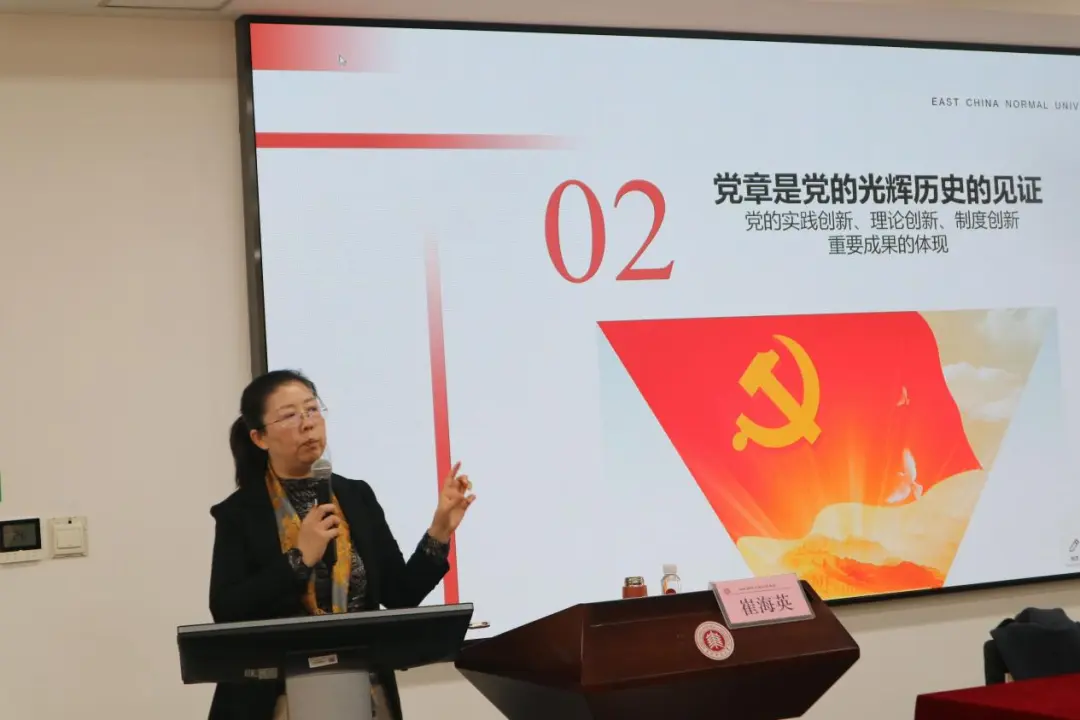 马克思主义麻豆视频党委副书记崔海英教授以《学党章、听党话、跟党走——争做新时代好青年》为题作专题报告。崔教授从党章作为立党治党管党总章程的根本地位、党的光辉历史见证、二十大党章新内容、青年使命担当四个维度系统解读,阐明党章与时俱进的鲜明特质与根本大法作用。她以历史脉络梳理党章演进,引导学员深刻理解党的性质宗旨,勉励青年学子深入研读党章、传承红色基因,切实增强“四个意识”、坚定“四个自信”、做到“两个维护”,在新时代自觉践行初心使命,勇担时代责任。