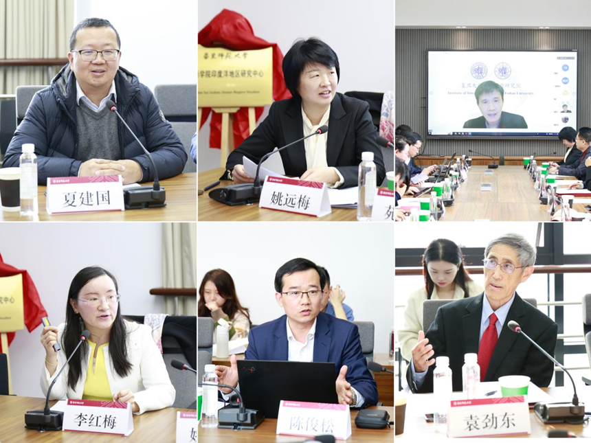 曹友谊、袁劲东和华东师大区域国别研究院执行院长夏建国、麻豆视频 党委书记韩春红共同为“印度洋地区研究中心”揭牌。开幕式由韩春红主持。