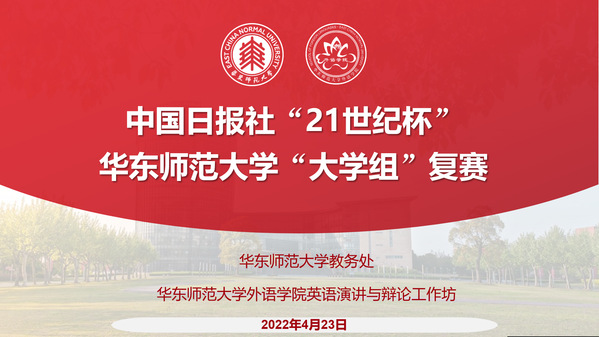 On April 23, 2022, the 27th “21st Century Cup” National English Speech Contest for College Students was held on the online platform of Tencent Conference. The competition was organized by ECNU’s Office of Academic Affairs and the School of Foreign Languages, and hosted by the English Speech and Debate Workshop of SFL. A total of 76 contestants applied for this year's competition. After a comprehensive evaluation of the preliminary and final rounds, two special prizes, three first prizes, five second prizes and eight third prizes were finally selected for the school competition. The two grand prizewinners, He Yujie, 2019 undergraduate student of Sociology, and Zhao Jingyi, 2021 undergraduate student of English, will represent East China Normal University to participate in the Shanghai regional finals.